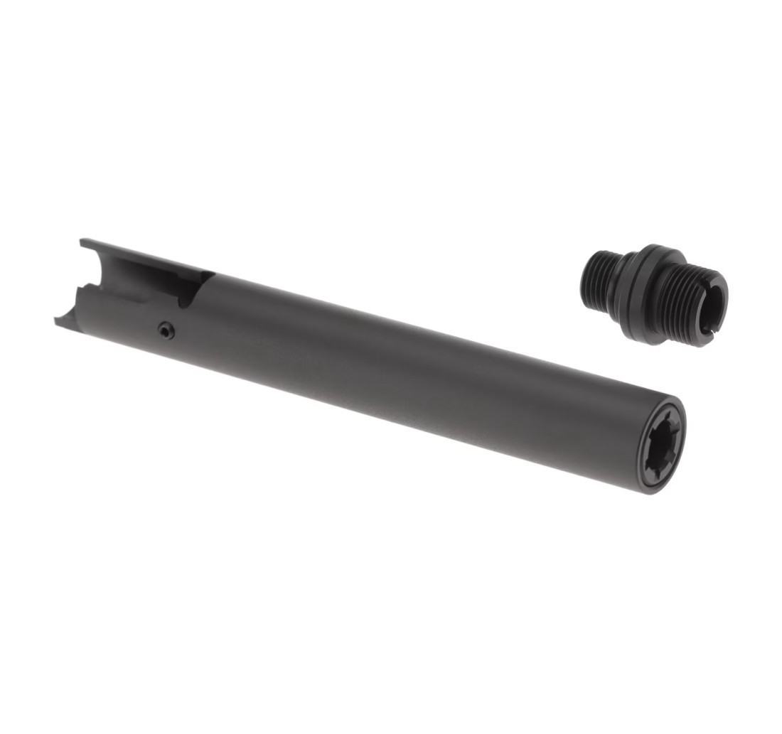 Inoltre, la canna è dotata di una filettatura 11CW con tappo, nonché di un adattatore per filettatura esterna 14CCW. Questo consente l’utilizzo della maggior parte di soppressori, traccianti, compensatori o altri accessori disponibili sul mercato.
