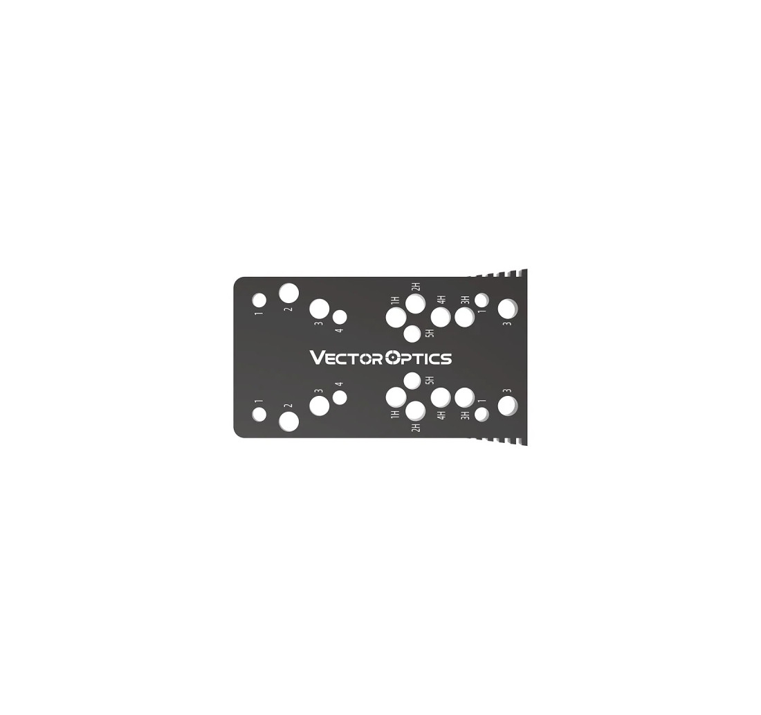 Questa piastra della Vector Optics è progettata per installare ottiche red dot su modelli CZ. È realizzata in alluminio 7075‑T6, lavorata con precisione CNC, e presenta un design a basso profilo che mantiene un corretto allineamento di mira. La finitura nera opaca evita i riflessi e completa l’estetica dell’arma. Questo adattatore si monta al posto del mirino posteriore della pistola e dispone di più configurazioni di fori di montaggio per adattarsi a un’ampia varietà di red dot presenti sul mercato.