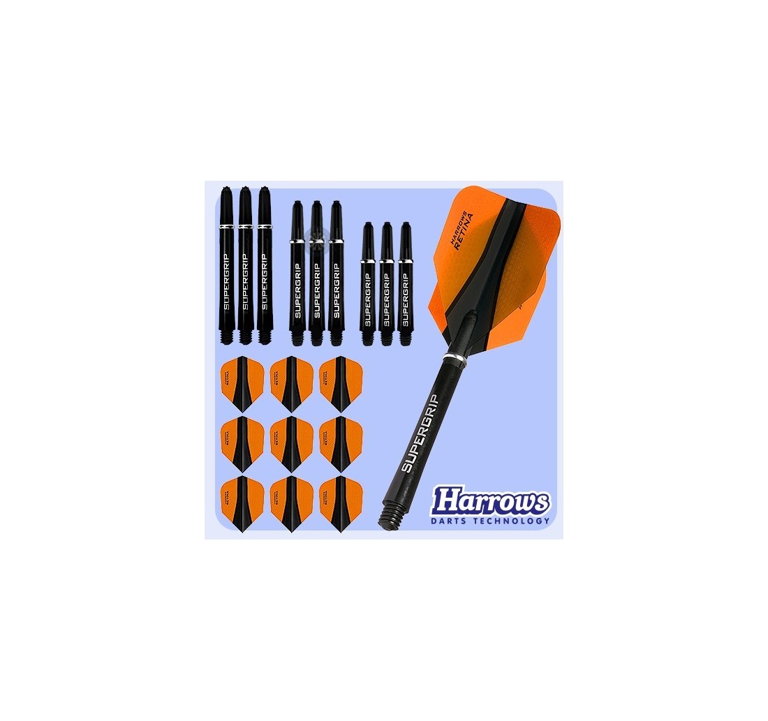 - 3 set di stine Harrows supergrip con anelli: 1 Medium, 1 Midi, 1 Short