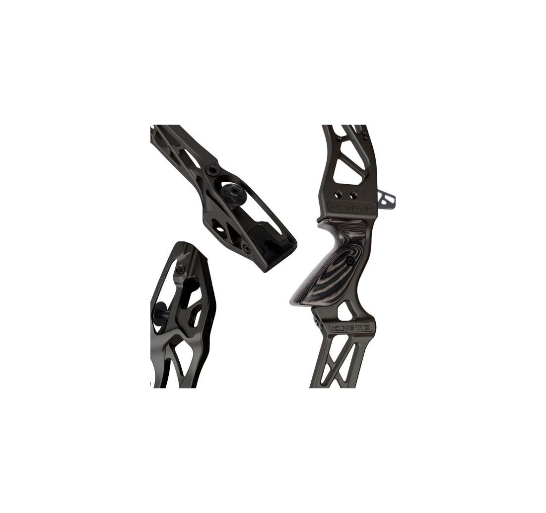 Il nuovo riser Kinetic Zivio V2 con attacco ILF è ottenuto per estrusione da un blocco di alluminio 6061-T6. Struttura leggera ma allo stesso tempo rigida con bella grip ergonomica. Precarica e sistema di allineamento flettenti.