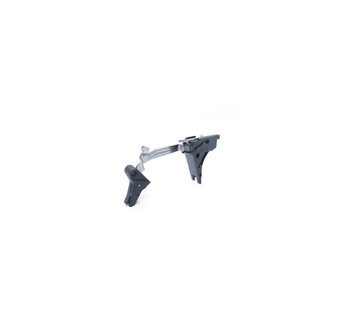 Il Nuovo Grilletto FLAT è completamente in ERGAL lavorato in CNC con sicura nera opaca a taglio. Il pacchetto di scatto, è realizzato con componenti originali Glock Performance (Barra del grilletto - Ejector + Connettore, tutti completamente lavorati e migliorati). Questo kit permette di poter avere un peso di sgancio di circa 1kg* mantenendo affidabilità al 100% e utilizzando molle originali.