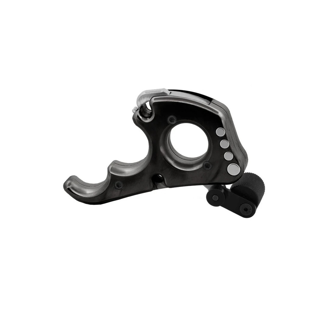 - Pulsante di sgancio rapido – Permette di aprire la mascella del rilascio senza dover attivare lo scatto, per una gestione comoda e sicura