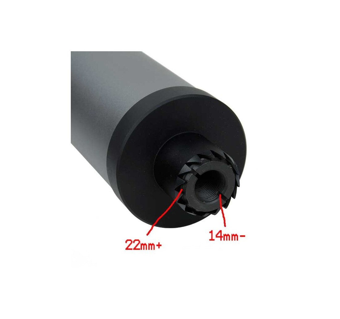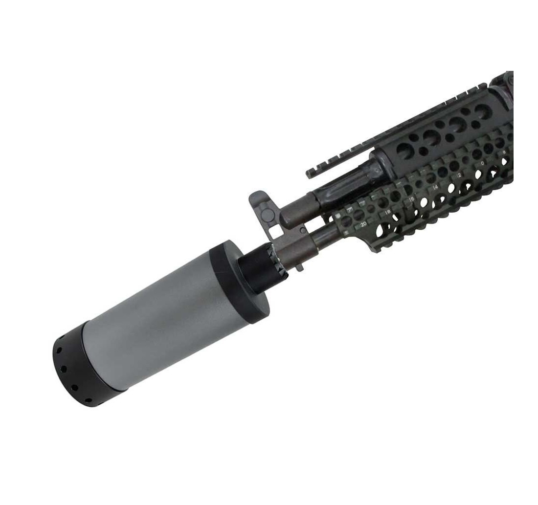 Attacco diretto su filetto originale degli AK74 da 24mm (Kalash, VFC, E&L, Cyma etc...) o passo comune 14mm negativo.