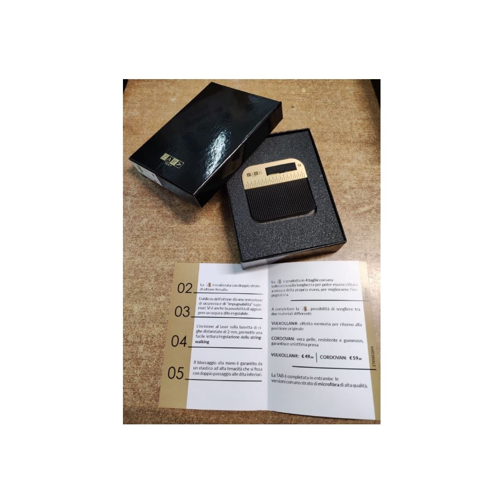 La nuovissima Tab Zara Brass è il top della gamma per i tiratori arco nudo. Realizzata con doppio strato di ottone fresato. L'incisione al laser di righe distanziate di 2 mm. permette una facile lettura per lo string walking. La mano rimane ben bloccata grazie ad un elastico che si fissa con doppio passaggio al medio e all'anulare.