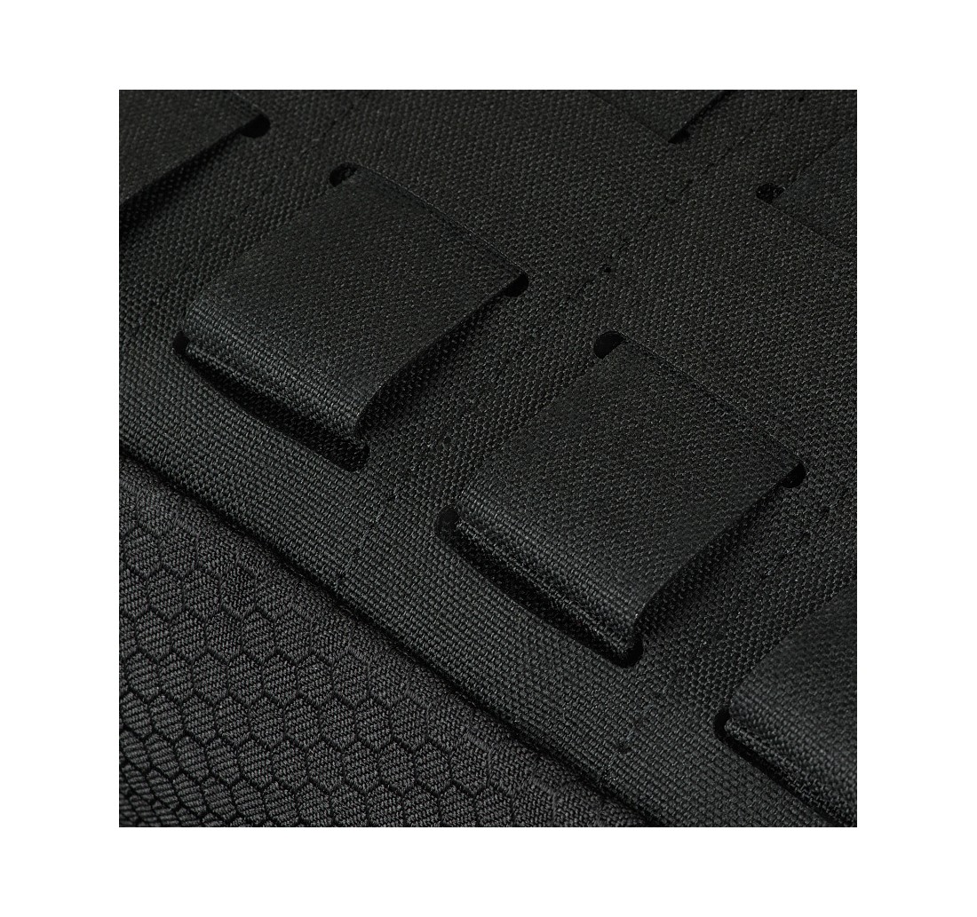La Elite Hex Pouch si fissa all’equipaggiamento tramite interfaccia MOLLE, realizzata in Cordura Squadron con tecnologia Laser Cut. Può essere agganciata a un cummerbund per accesso rapido, a una piastra addominale, oppure usata come borsa utility aggiuntiva su un pannello d’assalto di un plate carrier.