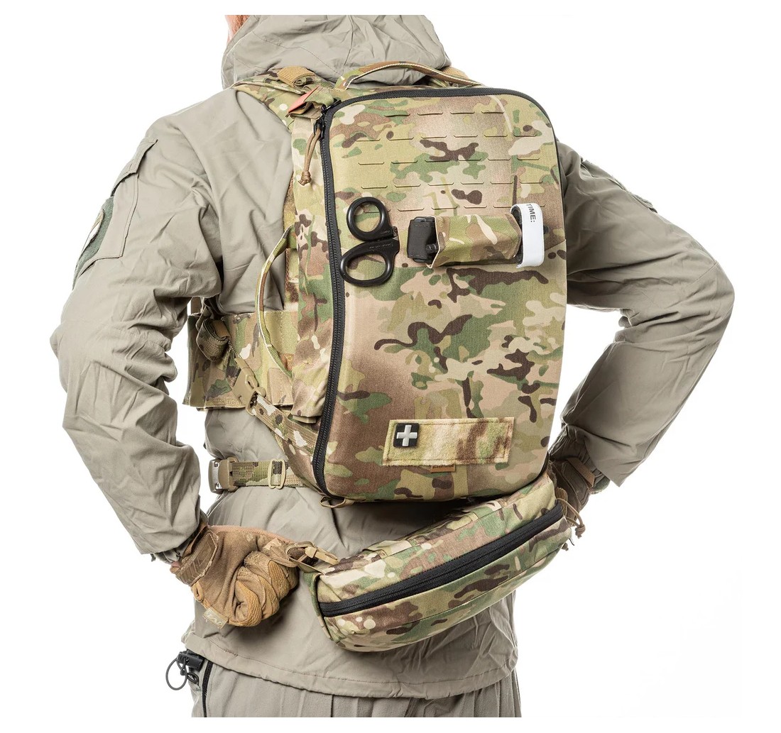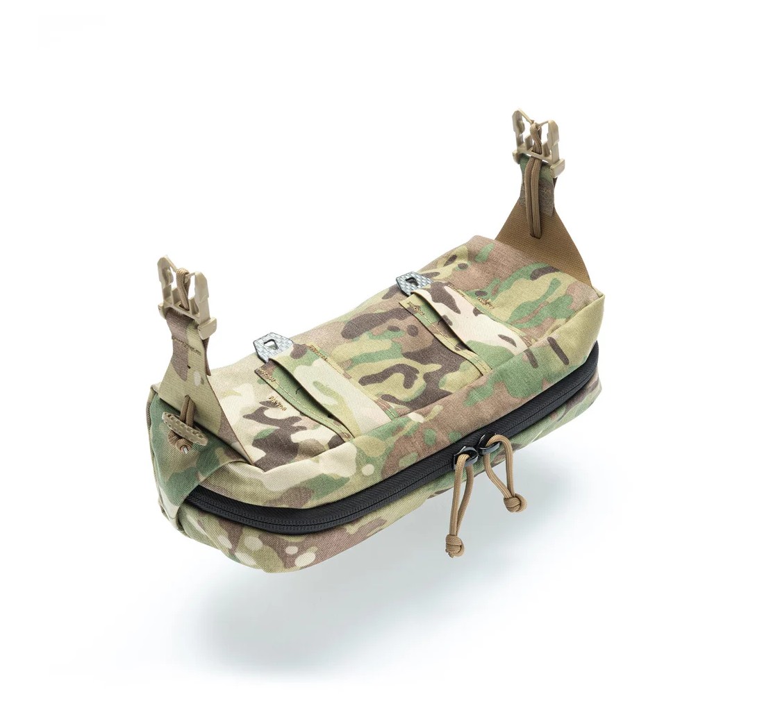 Tasca estremamente versatile, ideata per essere installata nella parte inferiore dello zaino AURA 13 aumentandone la capacità di carico e permettendo all’utilizzatore di stivare in un solo punto il materiale di cui può avere necessità immediata. La QD Pouch dispone di un sistema di sgancio rapido e della possibilità di essere indossata frontalmente come un marsupio al termine dell’utilizzo, senza mai rimuovere lo zaino dalle spalle.
