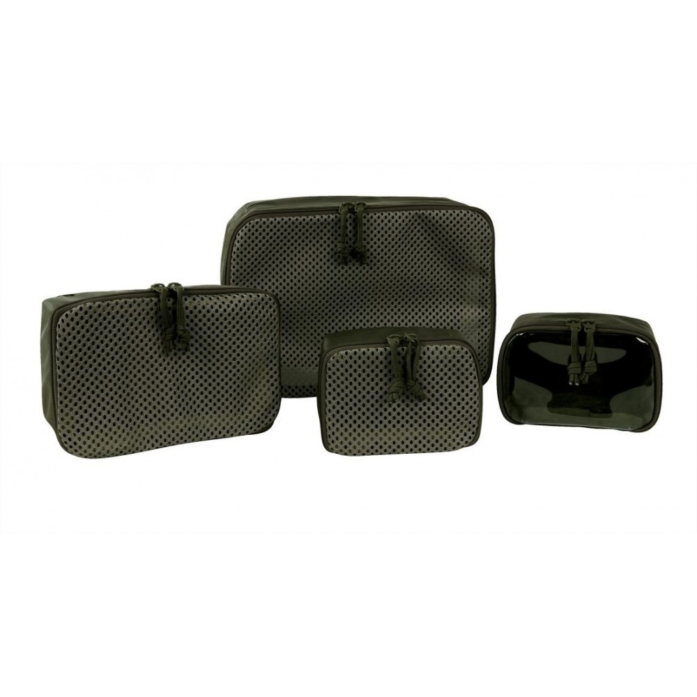 Tasmanian Tiger set tasche modulari, composto da 4 pezzi, in tre diverse dimensioni, dotate di aggancio velcro posteriore, doppia zip di chiusura e parte superiore in tessuto rete flessibile.