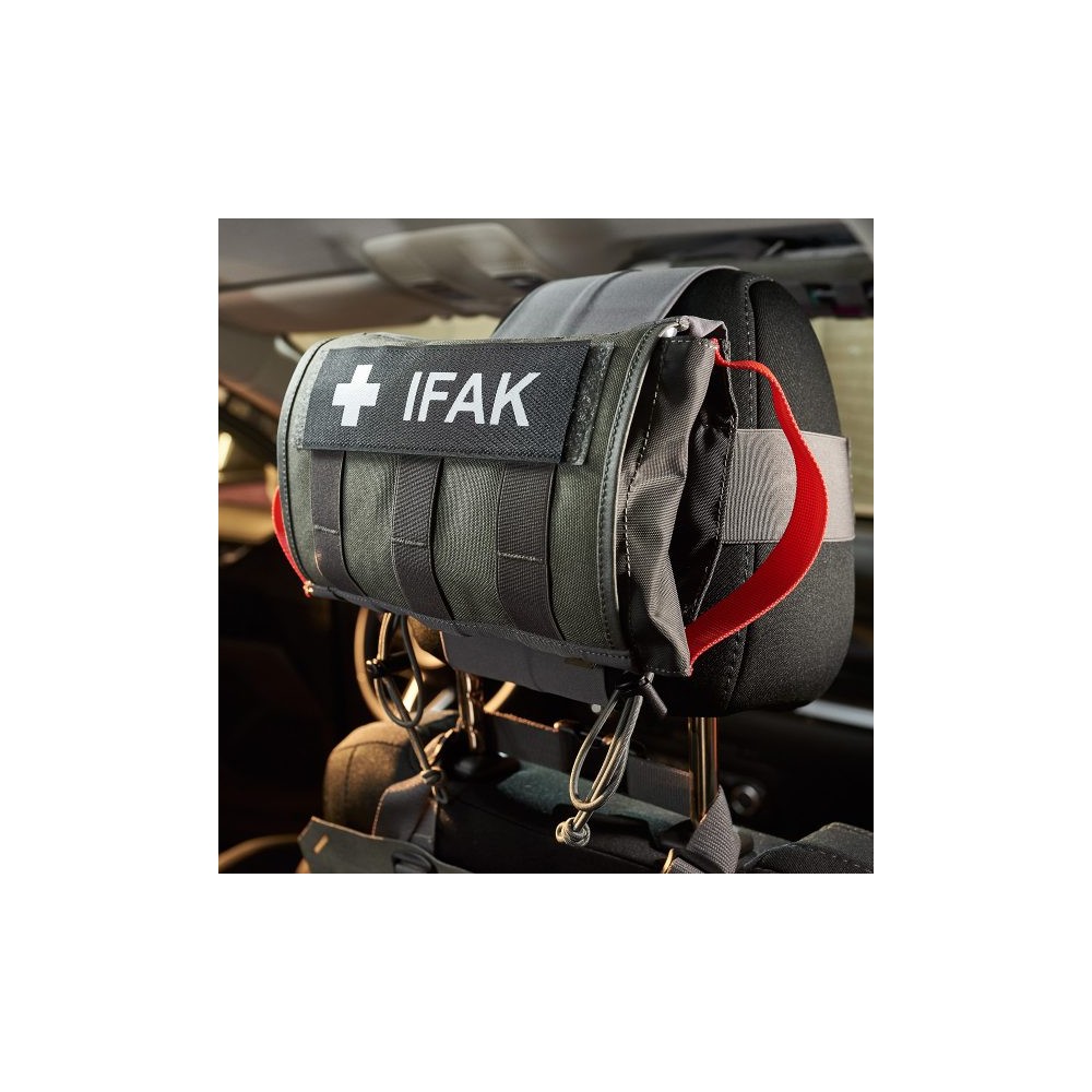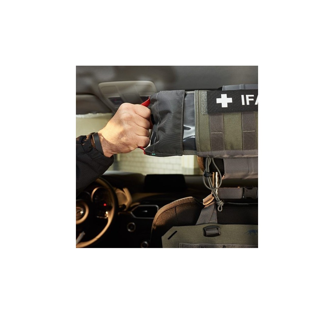 Giberna IFAK fissabile al poggiatesta del sedile dell’auto. Estrazione rapida ambidestra del contenuto.