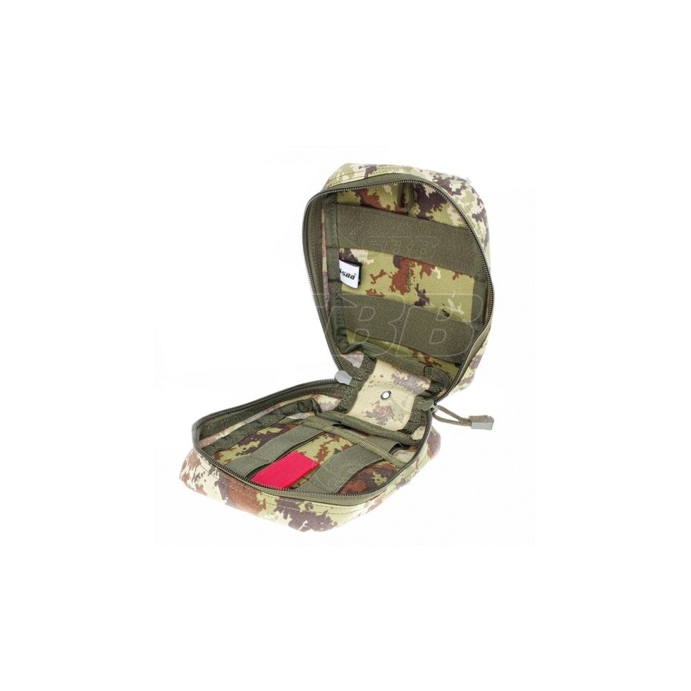 Apertura a libro, con doppia zip, questa tasca è provvista di numerosi passanti elastici al suo interno (per bende, siringhe, ecc)