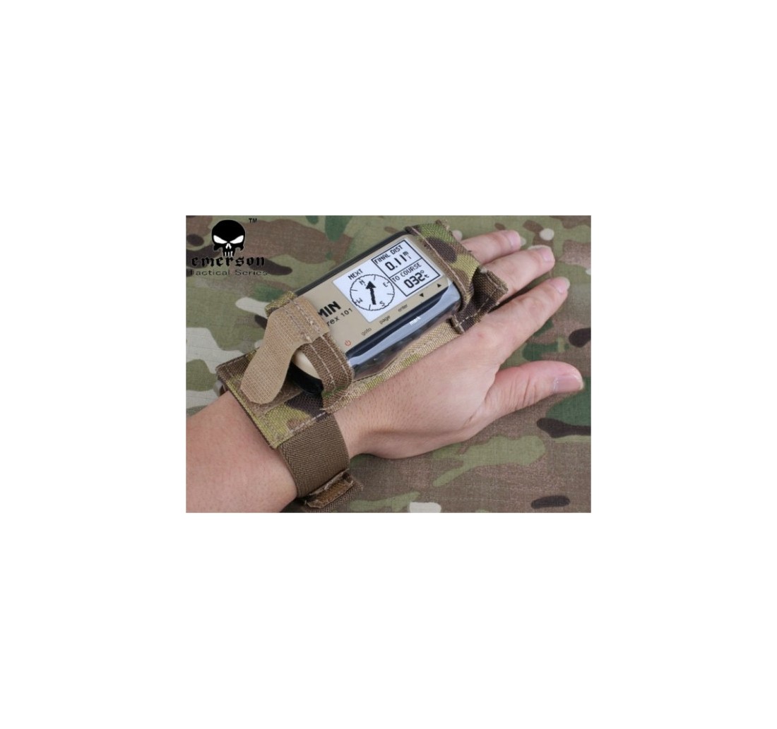 Emerson tasca porta GPS Navyseal da polso (o da mano). Fissaggio tramite fascia elastica con chiusura in velcro e fascetta elastica da dito.