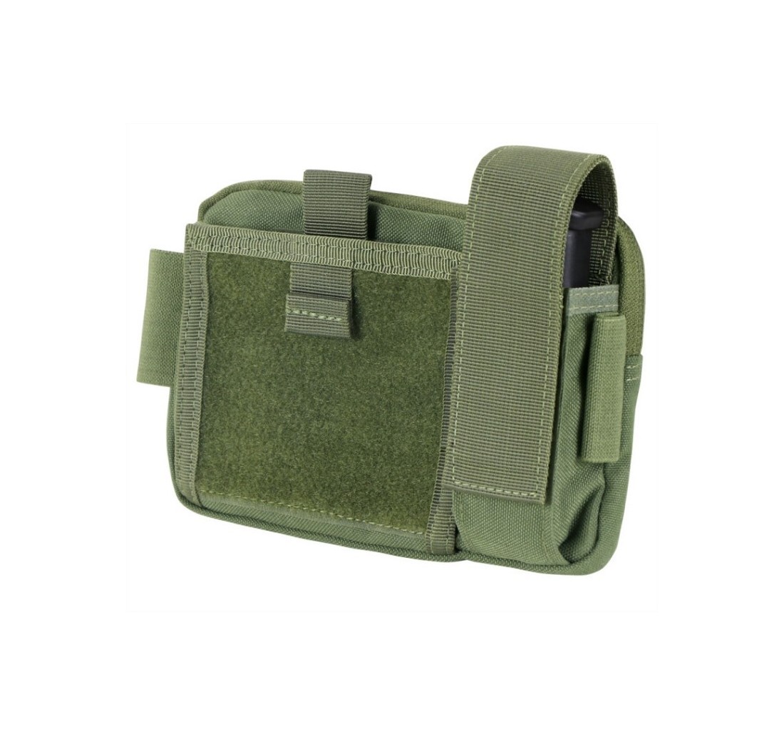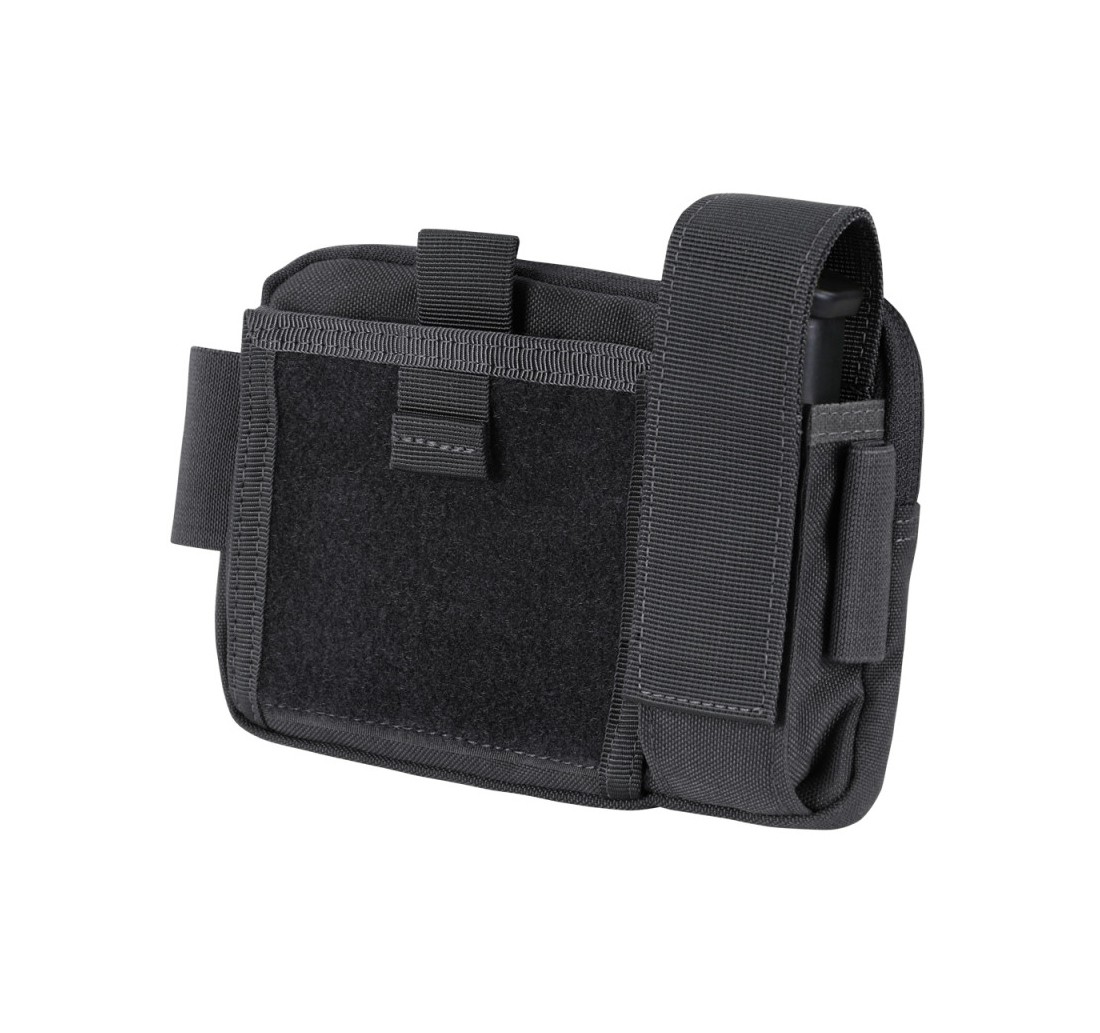 Tasca Admin realizzata in nylon 1000 denari, dotata di 2 elastici portapenne laterali e di pannello a strappo cm 10x9 frontale, posteriormente dotato di taschino in vinile trasparente per ID cm 9,5 x 7.