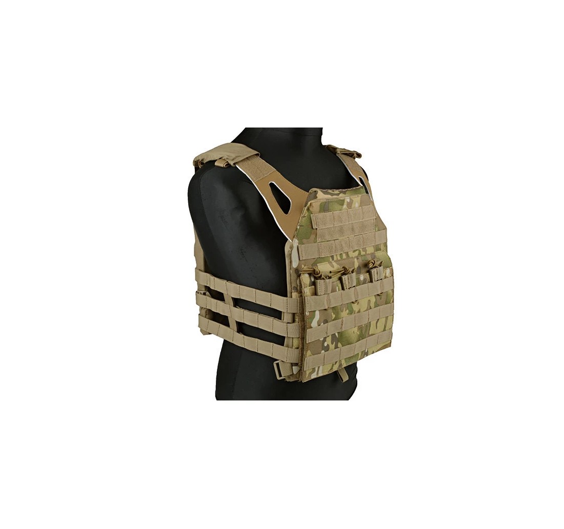 Il JPC Tactical Vest è un gilet tattico moderno e ultra leggero, progettato per garantire massima libertà di movimento e comfort. La sua struttura compatta copre principalmente la parte del torace, offrendo un equilibrio perfetto tra protezione e mobilità.