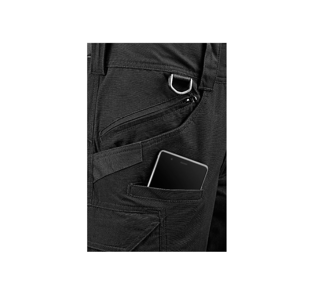 Taschino a scomparsa porta telefono e tasconi spaziosi sulle gambe per il trasporto di effetti personali.