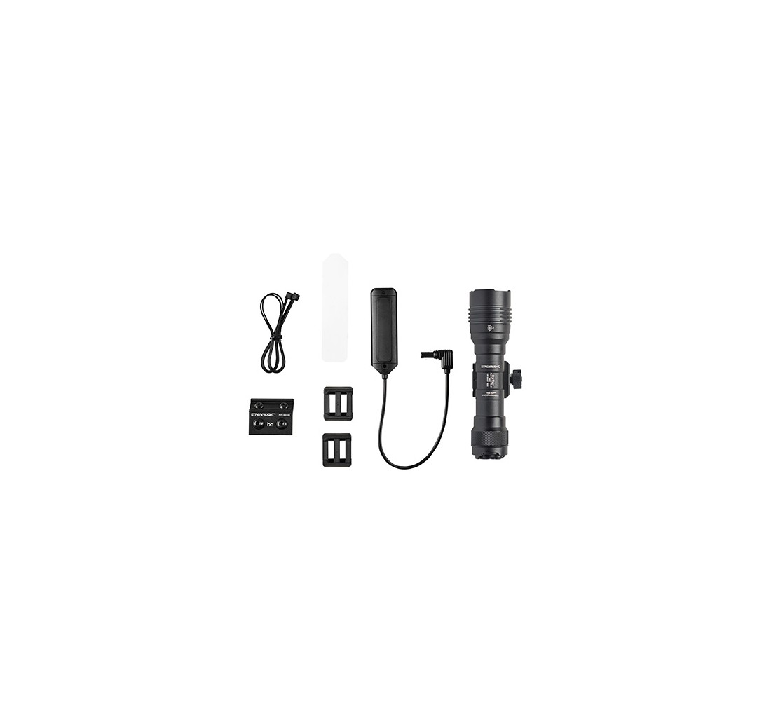 - Modalità stroboscopica ad alta potenza con una durata di 2,5/3,25 ore (batteria CR123A o pacco batteria SL-B26) Due batterie CR123A o il pacco batteria ricaricabile SL-B26 forniscono energia alla torcia. Un interruttore remoto a pressione aggiuntivo fa parte del set.