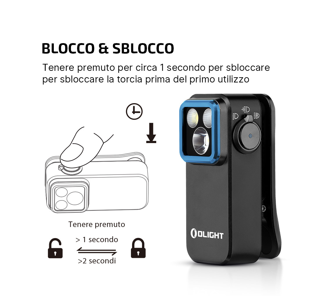 Tre luci: consentono di selezionare in modo flessibile tra le modalità di luce per varie esigenze di illuminazione.