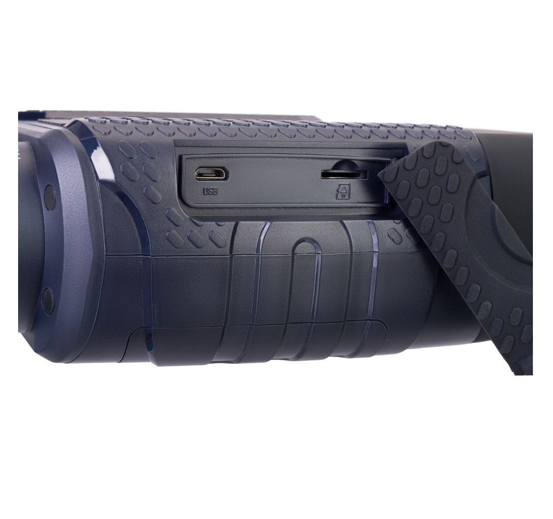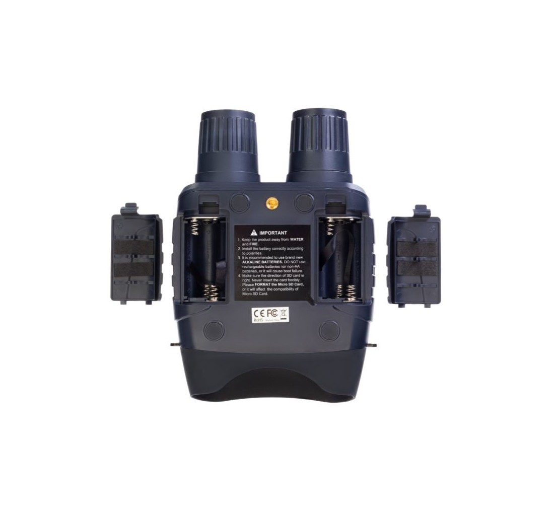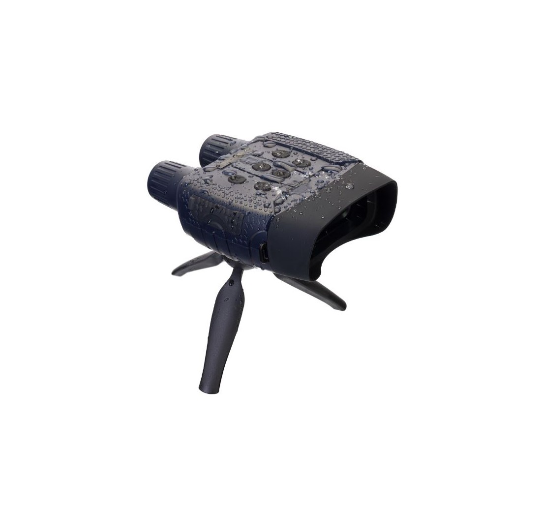 Il binocolo offre una presa ben salda, i pulsanti di controllo sono posizionati proprio sotto le dita dell’utente, per il massimo comfort, particolarmente importante durante le osservazioni notturne. Il corpo è impermeabile e resistente alla polvere e allo sporco. Un set di batterie standard è l’alternativa migliore a una batteria ricaricabile tramite rete elettrica: le batterie sono più facili da sostituire sul campo, se dovessero scaricarsi. Le batterie garantiscono un’autonomia dalle 4 alle 10 ore (a seconda dell’intensità della luce IR). Nel kit è incluso un piccolo treppiede, che consente di posizionare il binocolo in qualsiasi luogo per osservazioni più comode.