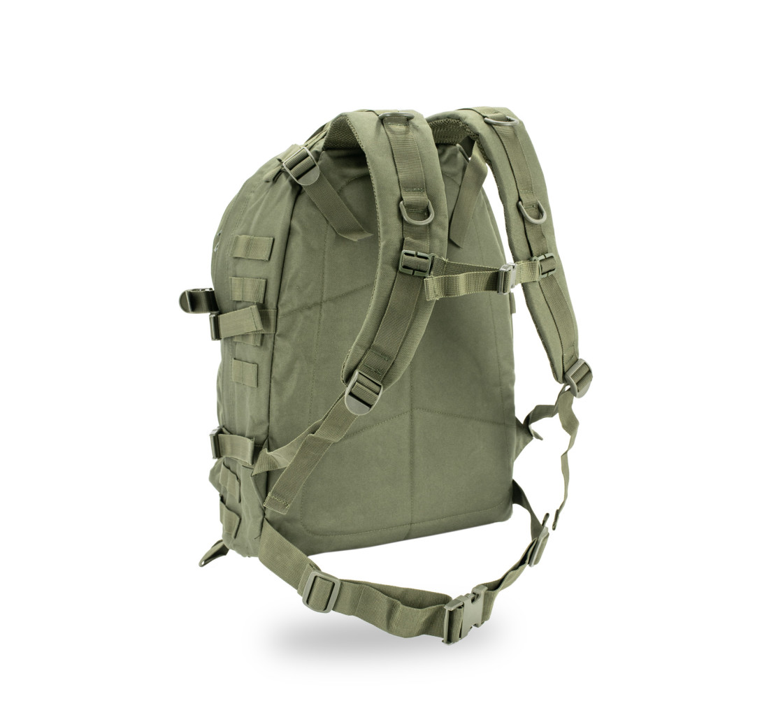 - Sistema MOLLE integrato su frontale, laterale e inferiore, per aggiungere tasche, accessori e attrezzature extra.