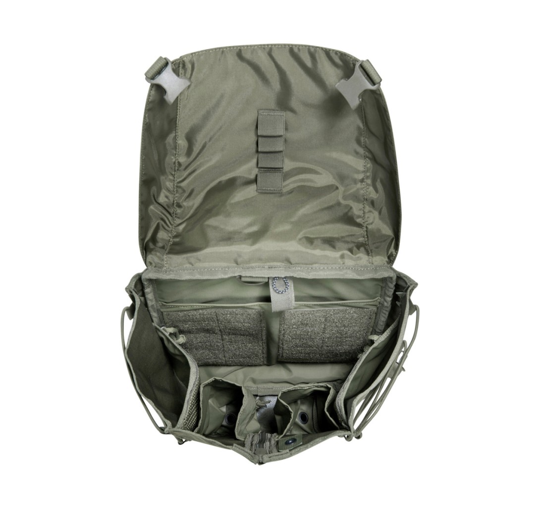 Il comparto principale presenta una superficie M.O.L.L.E. in velcro per una personalizzazione individuale ed è dotato di due tasche interne in rete, oltre a un sistema di compressione con cordino elastico. Il coperchio è provvisto di una tasca con cerniera. Il comparto principale apribile a libro rende lo zaino adatto al trasporto di tronchesi.